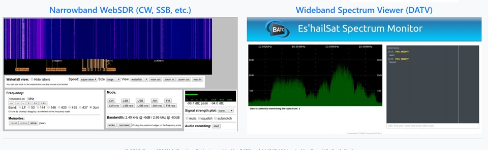 En coopération avec AMSAT-UK, le British Amateur Television Club exploitera un WebSDR pour le segment à bande étroite et un Spectrum Viewer pour le segment à large bande (DATV).