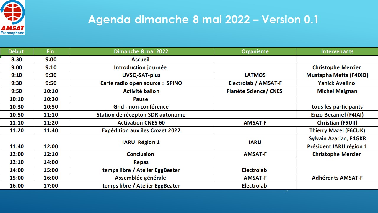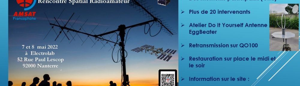L’AMSAT-Francophone, organise dans le cadre de son assemblée générale, la cinquième rencontre spatiale radioamateur les 7 et 8 mai 2022.