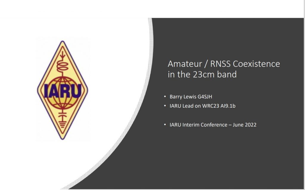 Après examen et approbation par le Comité exécutif de la Région 1 de l’IARU et le Conseil d’administration de l’IARU, une présentation sur la coexistence préliminaire Amateur / RNSS dans la bande 23cm a été publiée.
