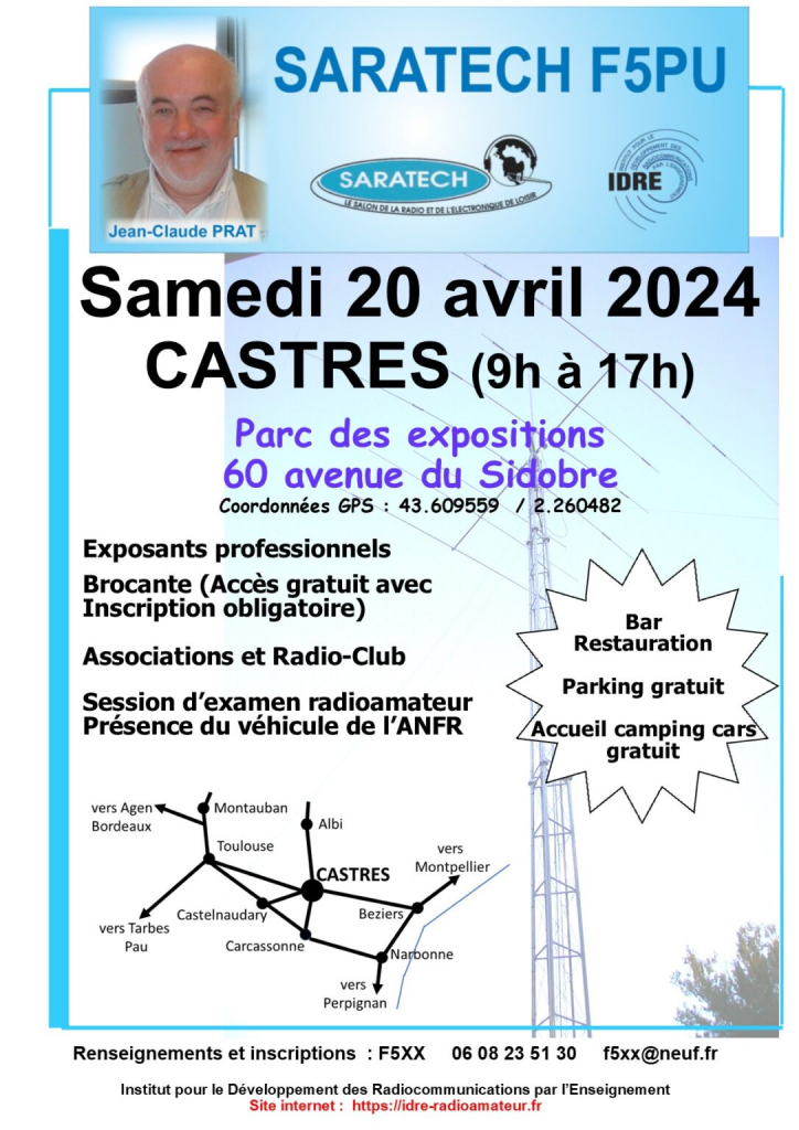 L’AMSAT-Francophone sera représentée au Salon Saratech à Castres le 20 avril 2024 par Nicolas Nolhier (F5MDY).